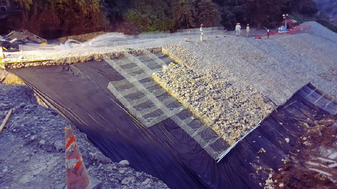 Línea en construcción con Geosintéticos